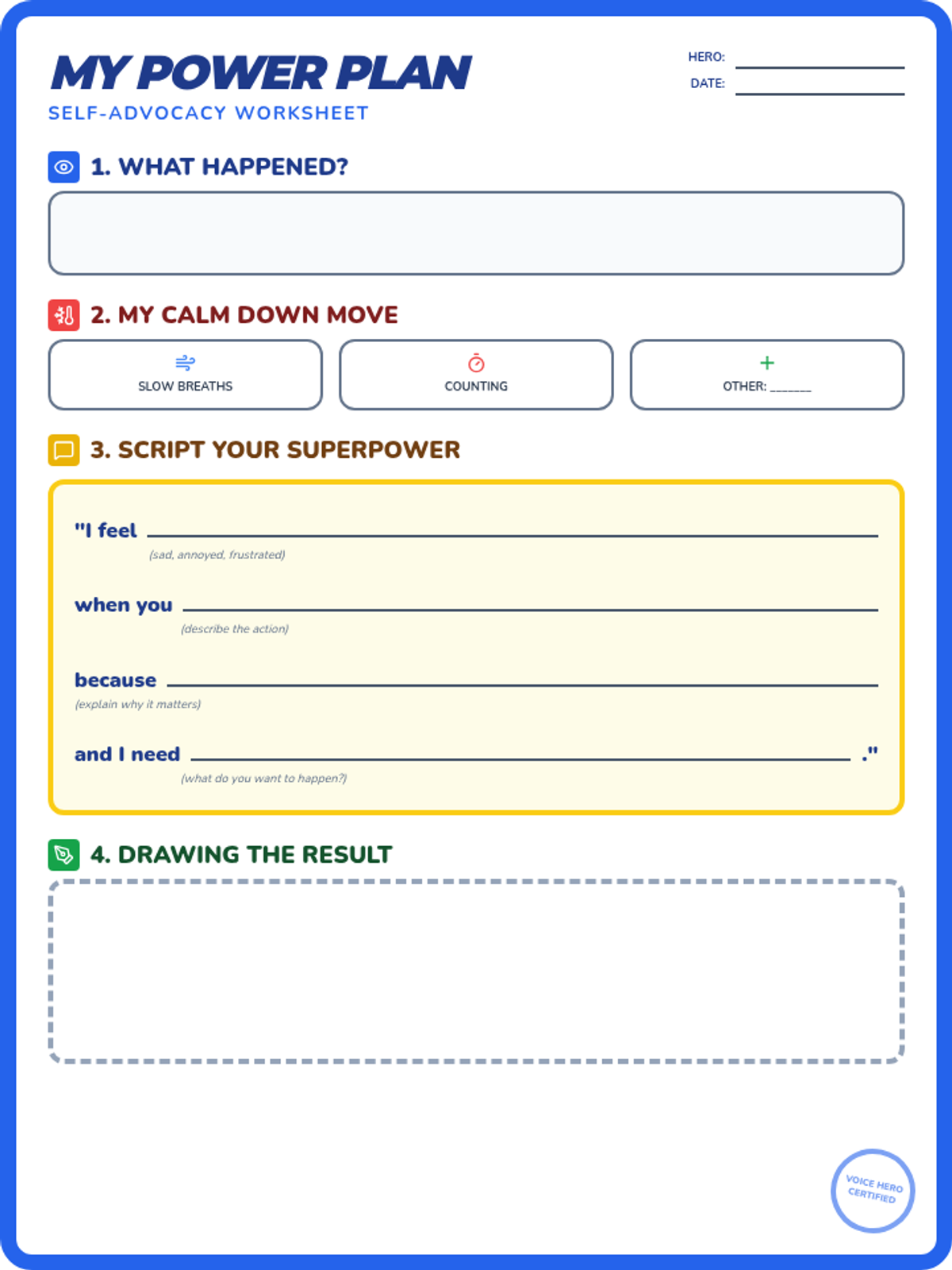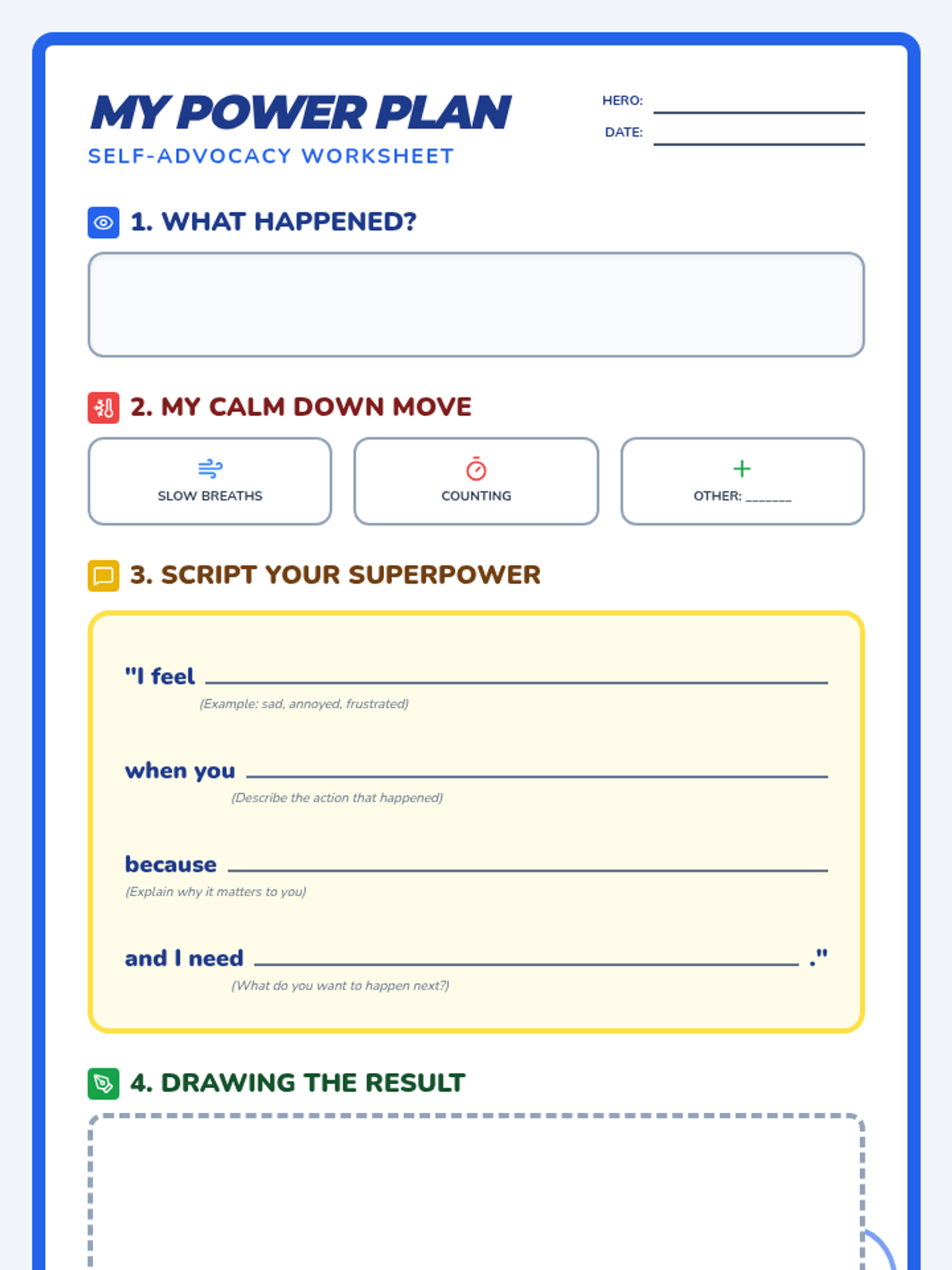 A guided reflection worksheet for students to process social conflicts. Updated to fit on a single page, improve handwriting legibility, and ensure high-contrast borders for printing.