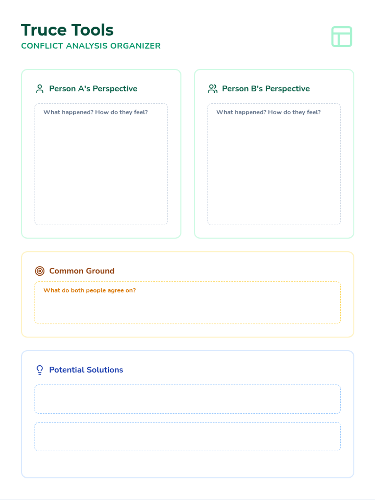 A self-paced reflection journal for students to explore their emotional triggers, physical reactions to conflict, and develop empathy for others' perspectives.