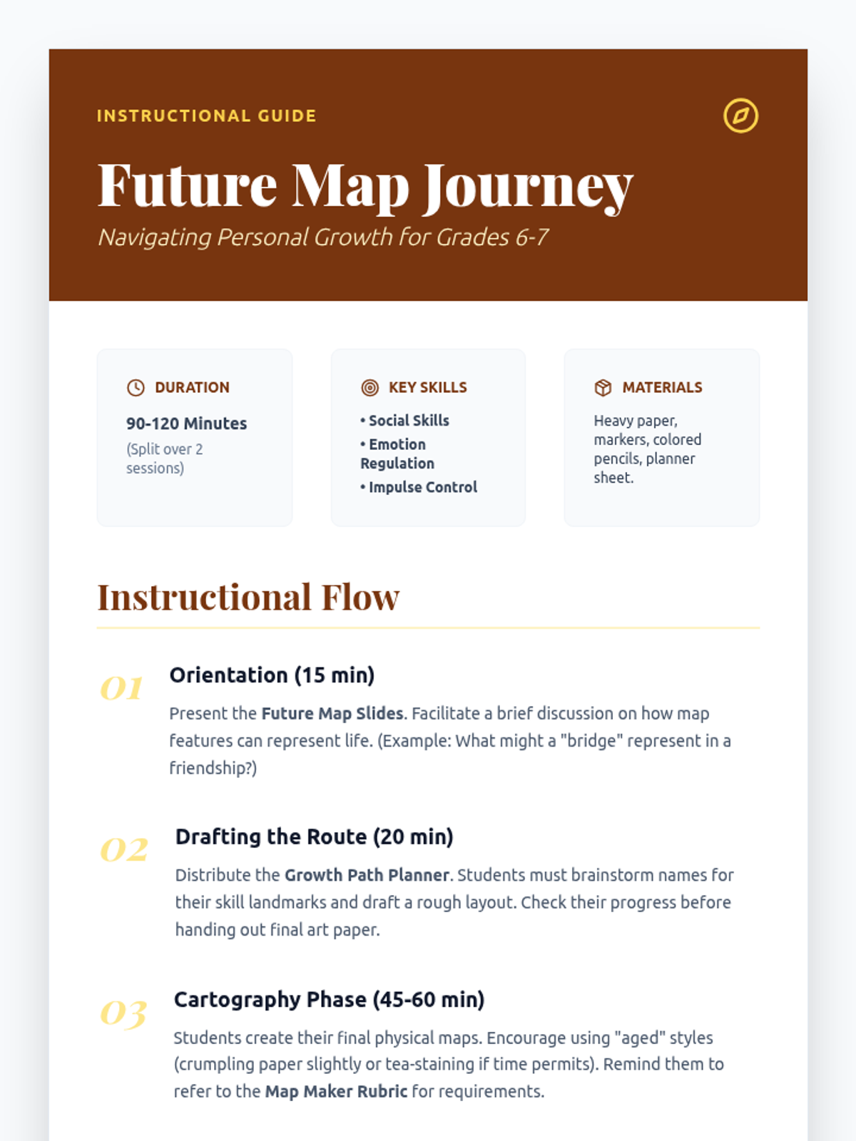 A comprehensive teacher guide for facilitating the Future Map project, including instructional flow, discussion prompts, and differentiation strategies.