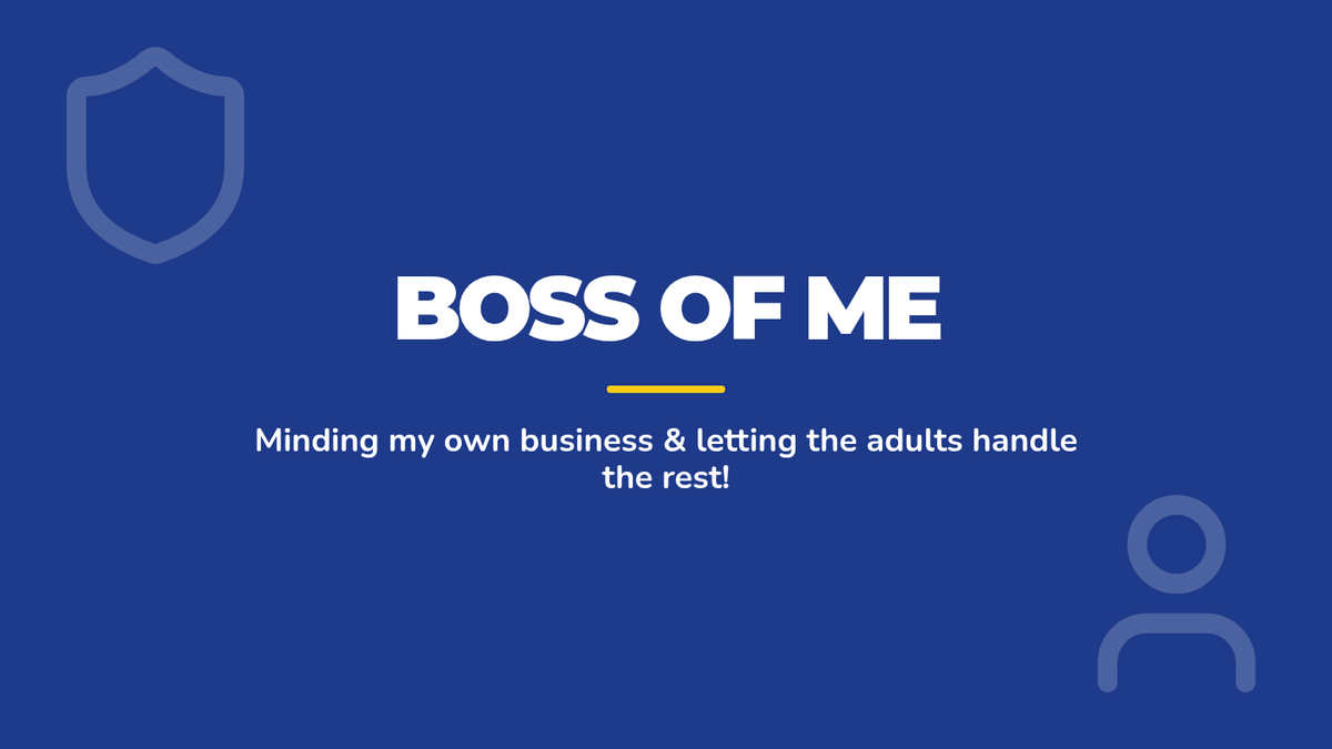 A high-impact slide deck for kindergarteners that introduces the 'Boss of Me' concept, featuring visual scenario rounds to practice when to mind their own business and when to ask for help.