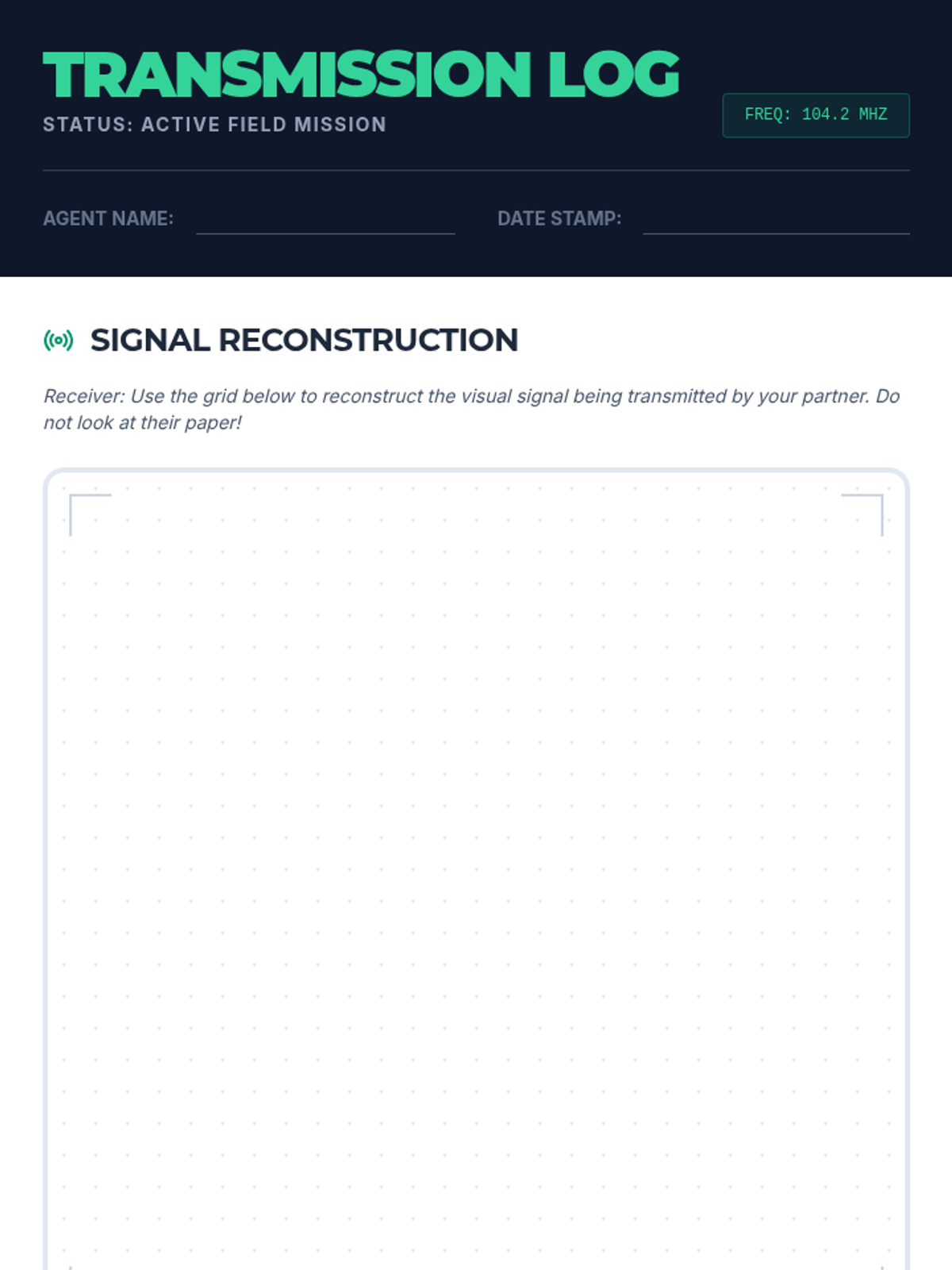 A student activity sheet for the Signal Hackers lesson, providing space for the back-to-back drawing challenge and reflection on communication effectiveness.