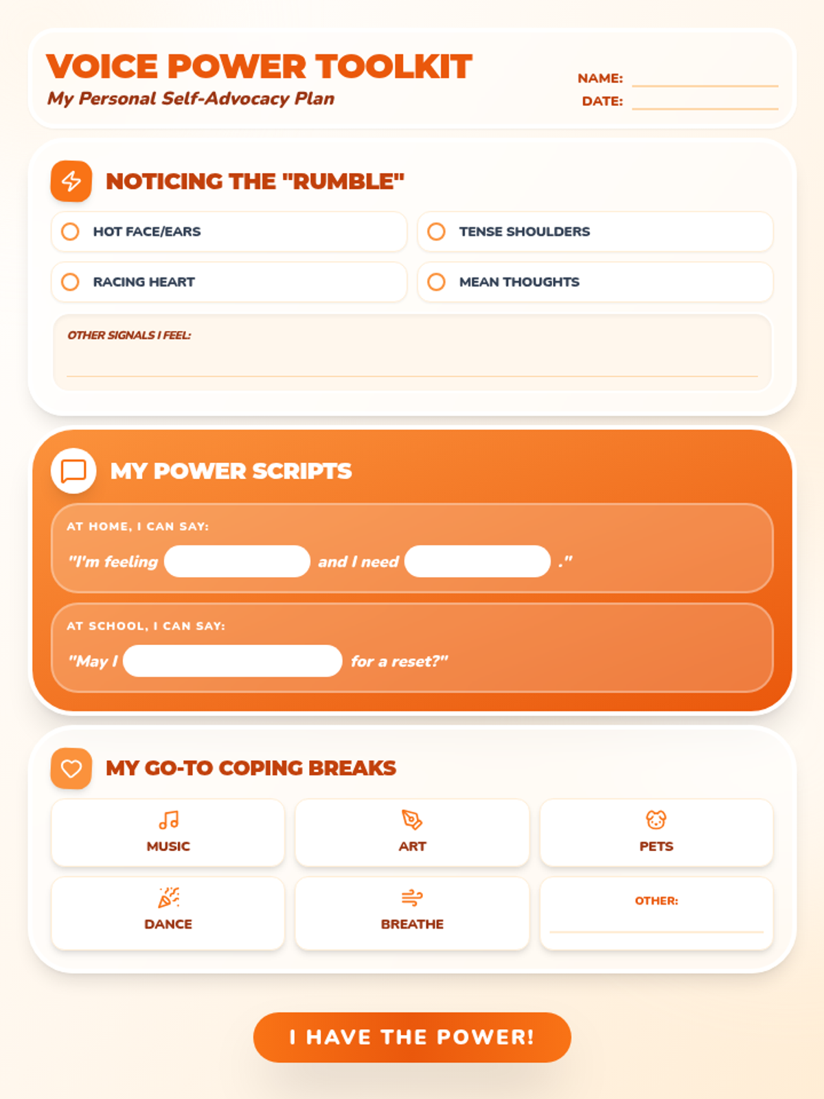 Student-facing worksheet for cognitive reframing. Revised to include larger student work areas, prompts moved outside boxes, an additional stormy thought line, and a cleaner Anchor Statement section with a light background. Reduced height to fit everything on a single page.