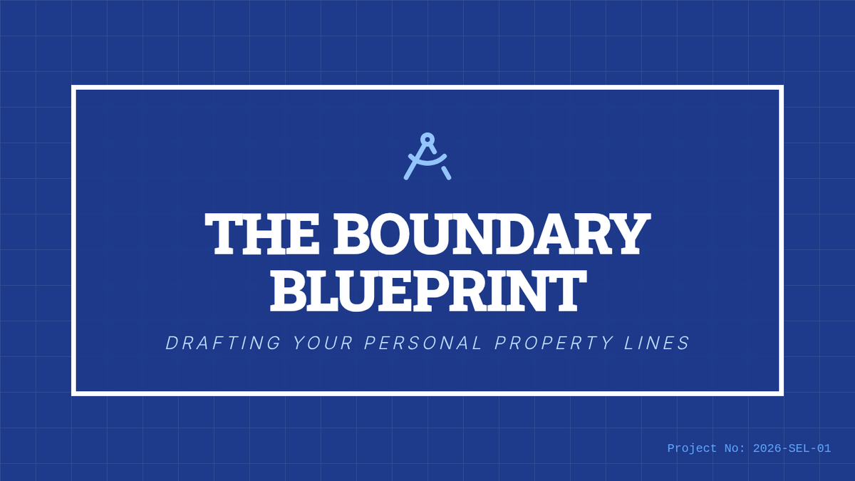 An architectural-themed slide deck for 'The Boundary Blueprint' lesson, featuring visual metaphors for personal boundaries and assertive communication. Revised for layout fit and readability.