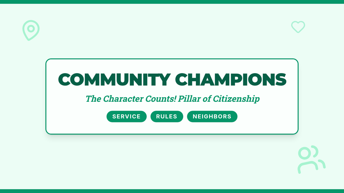 A visually engaging presentation for grades 3-5 introducing the Citizenship pillar of Character Counts, focusing on community service, rules, and being a good neighbor.
