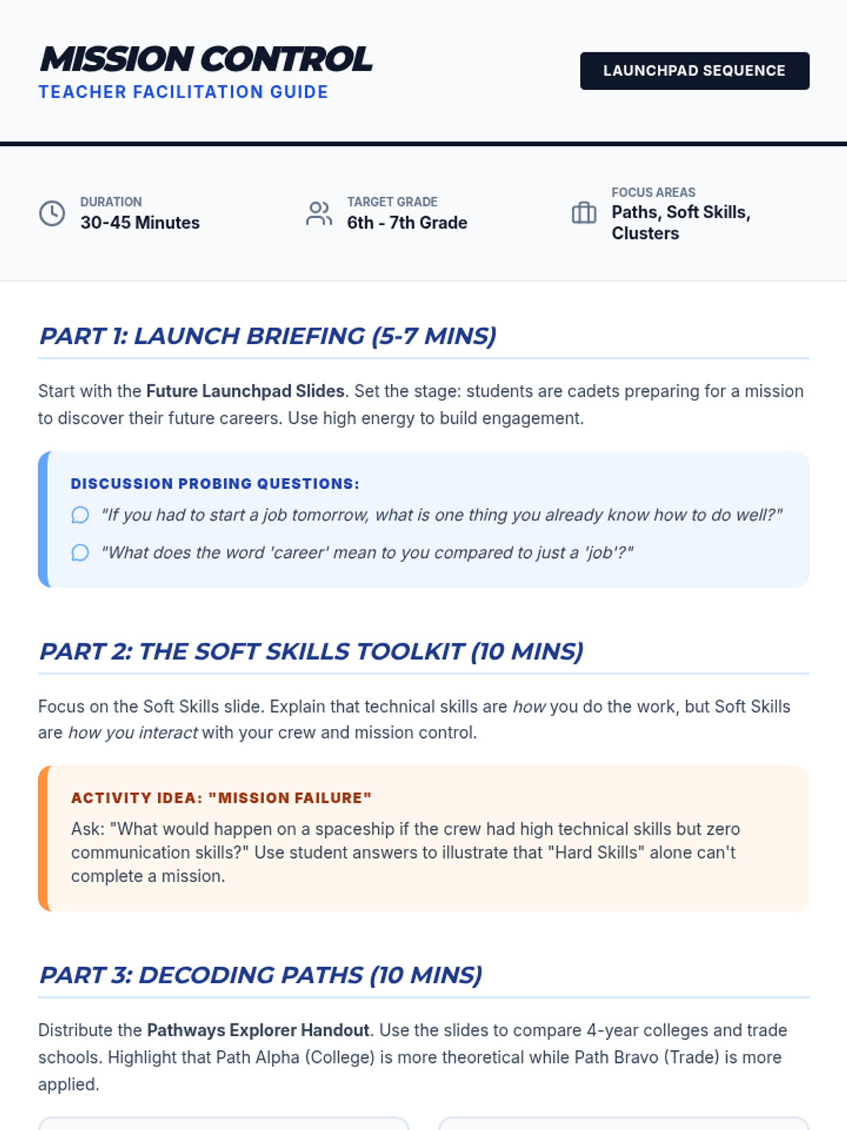 A comprehensive facilitator guide for teachers, providing a 30-45 minute lesson plan, discussion prompts, and differentiation strategies. Revised to fix page break issues and improve visual consistency.