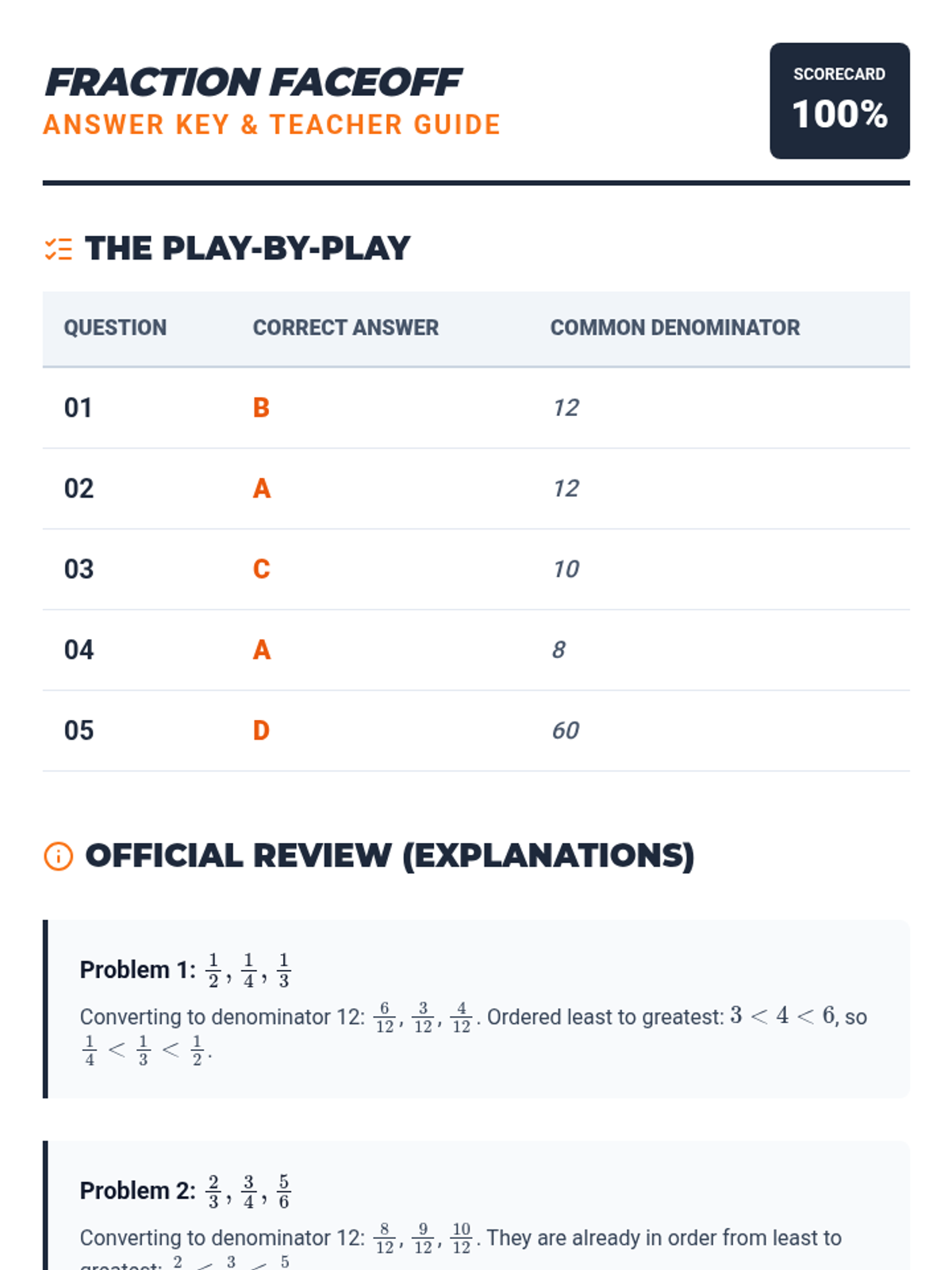 Fraction Finale Quick Check