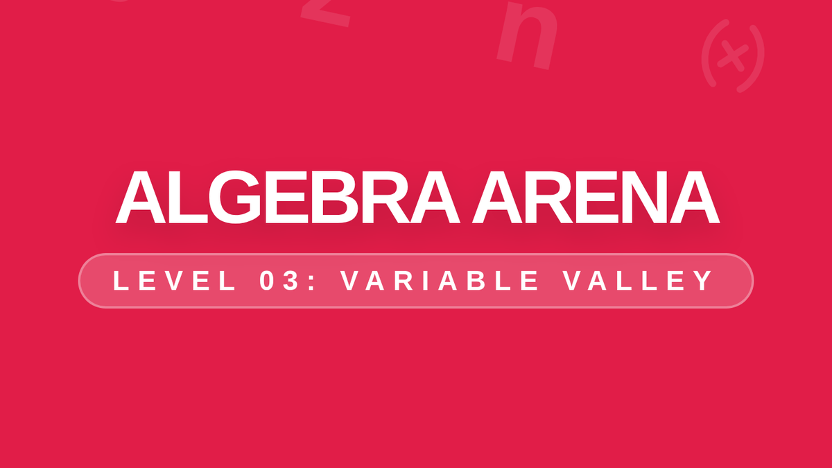 Digital slide deck for the third lesson of the ILEARN Mastery Quest, covering expressions, equations, and inequalities with an 'Algebra Arena' theme. Created with high-impact visuals and clear conceptual models. Revised for viewport sizing.
