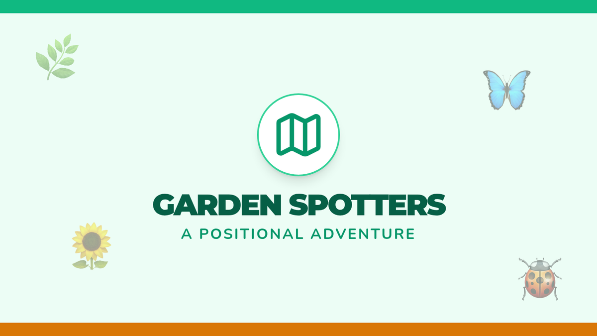 A bright, high-contrast slide deck using familiar garden objects and emojis to teach preschool students the concepts of on, under, in, behind, and beside.