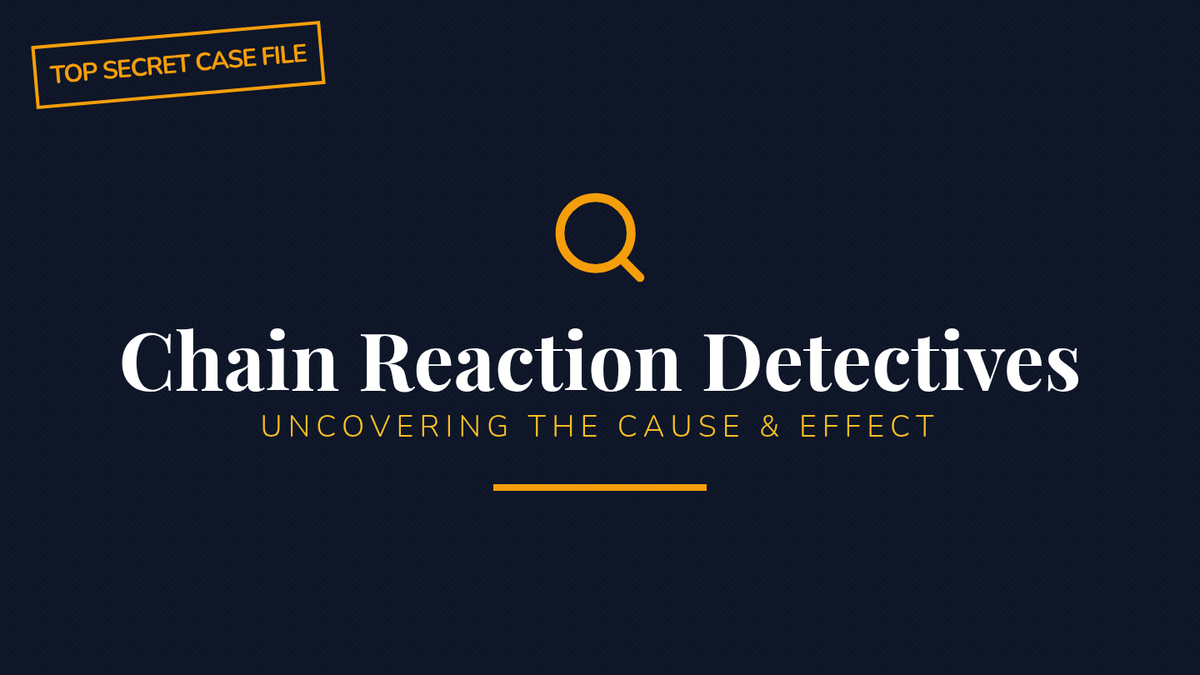 An engaging slide deck designed to teach 3rd graders about cause and effect through a "detective" theme, including definitions, character motivation analysis, and guided practice.