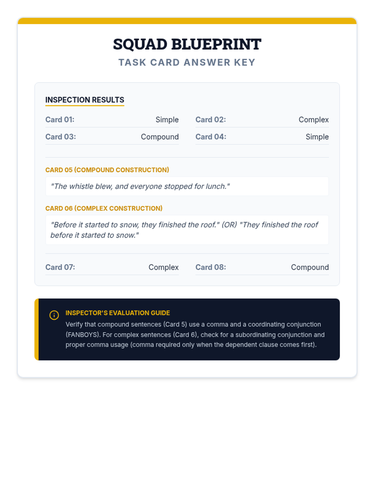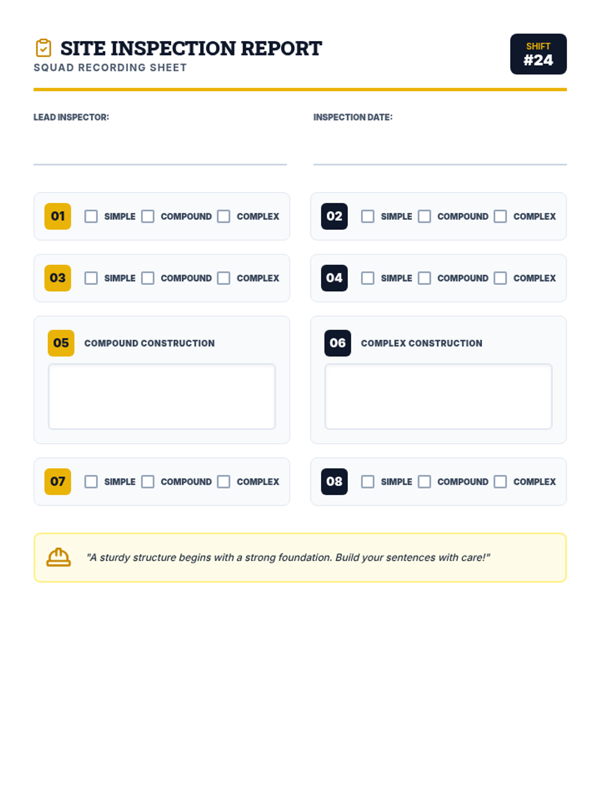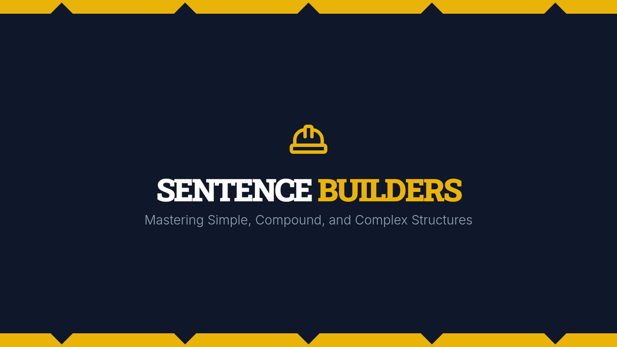 A comprehensive slide deck for teaching sentence structures using a construction theme. It includes clear definitions, blueprints for building each type, and a visual comparison guide.