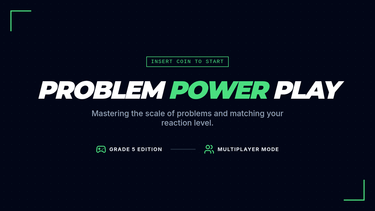 An arcade-themed slide deck for grade 5 students focusing on the 'Size of the Problem' concept. It uses gaming terminology (glitch, boss fight, system error) to help students categorize social and situational problems and match their emotional reactions accordingly.