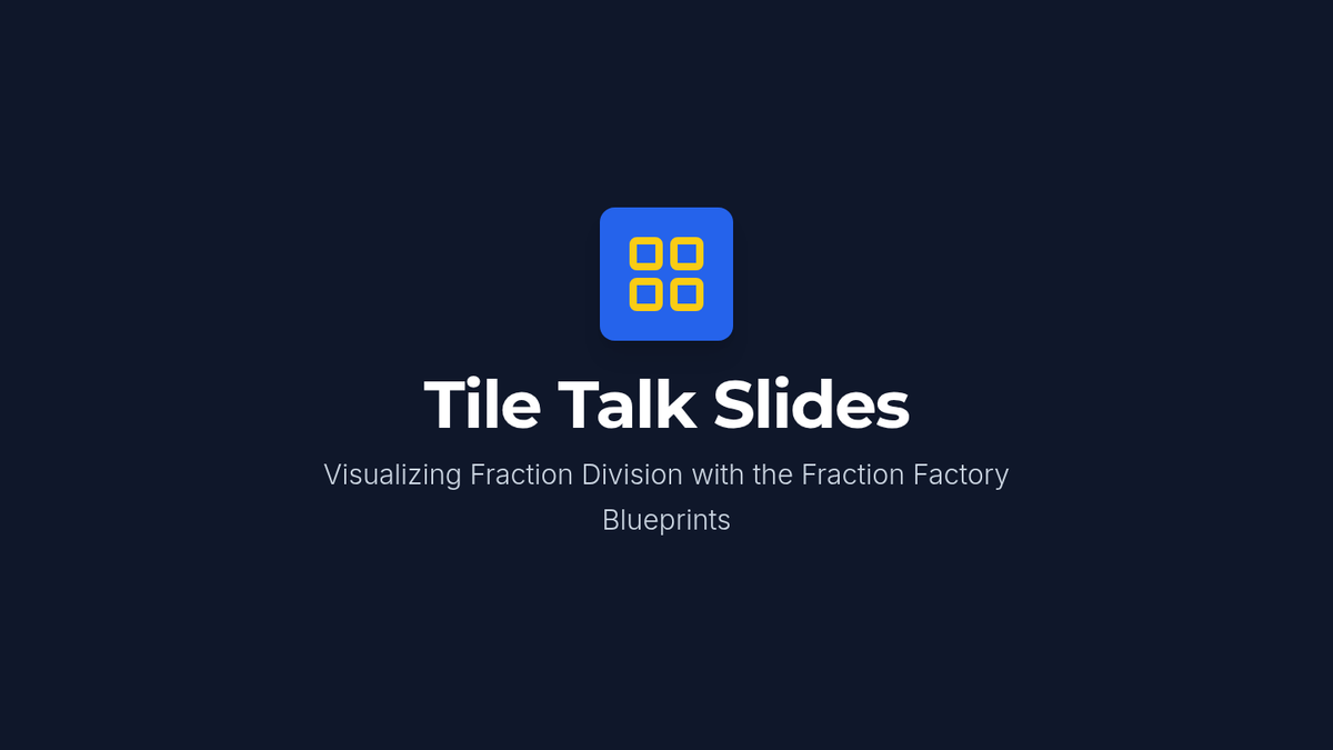 An instructional presentation for teaching fraction division using a 'Fraction Factory' theme. It uses clear visual fraction tiles to explain that division is asking 'how many pieces fit', featuring step-by-step visualizations of 1/2 divided by 1/4 and 2/3 divided by 1/6.