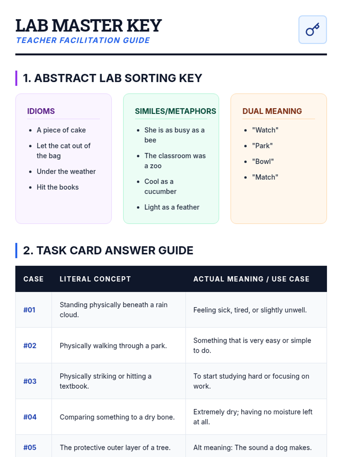 Teacher's reference guide with updated answers and improved font sizes for easier facilitation. Revised to ensure all sections stay together on the same page.