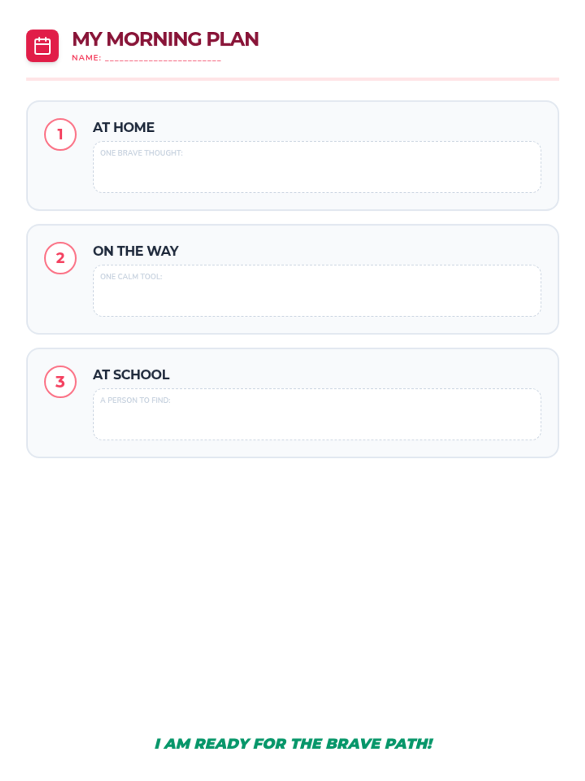 A visual action plan for the school morning transition, designed to help 2nd graders feel structured and confident.