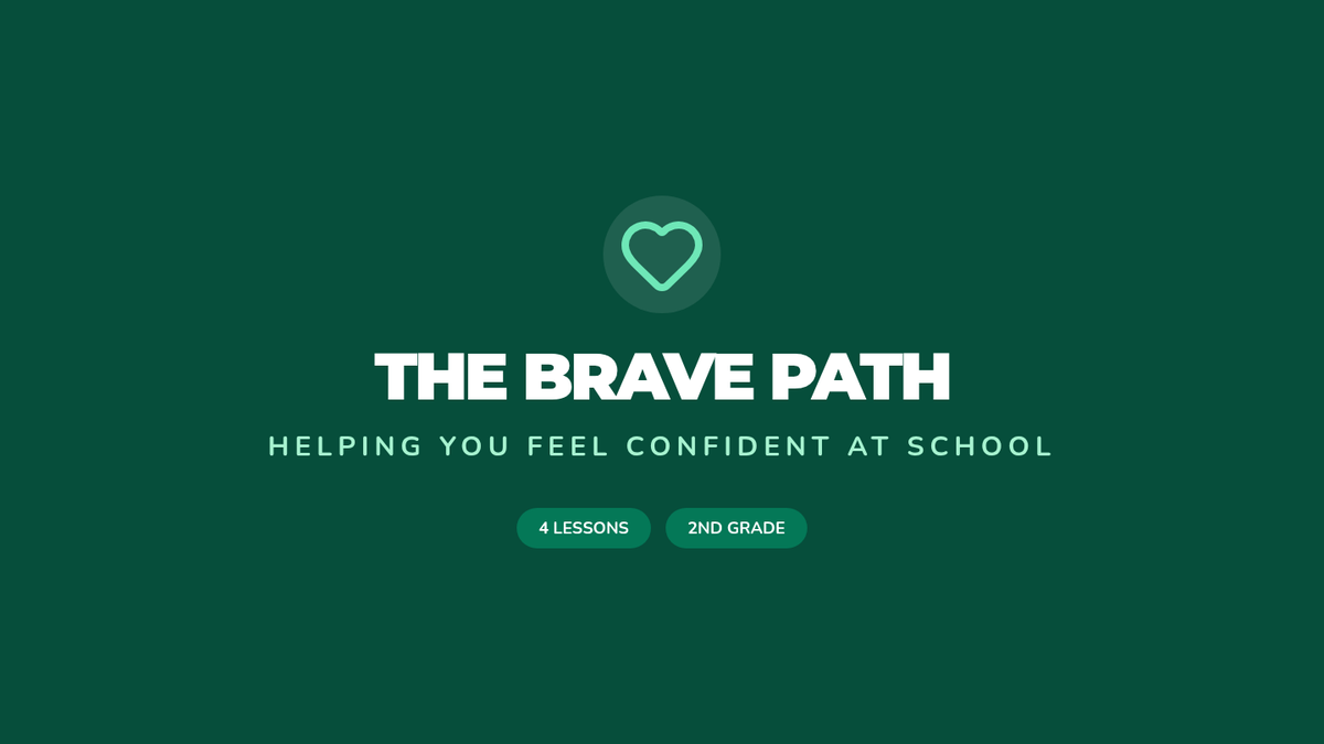 A visually engaging slide deck that supports the 4-session Brave Path sequence, introducing metaphors like the 'Worry Radio' and 'Calm Tools' for 2nd-grade students.