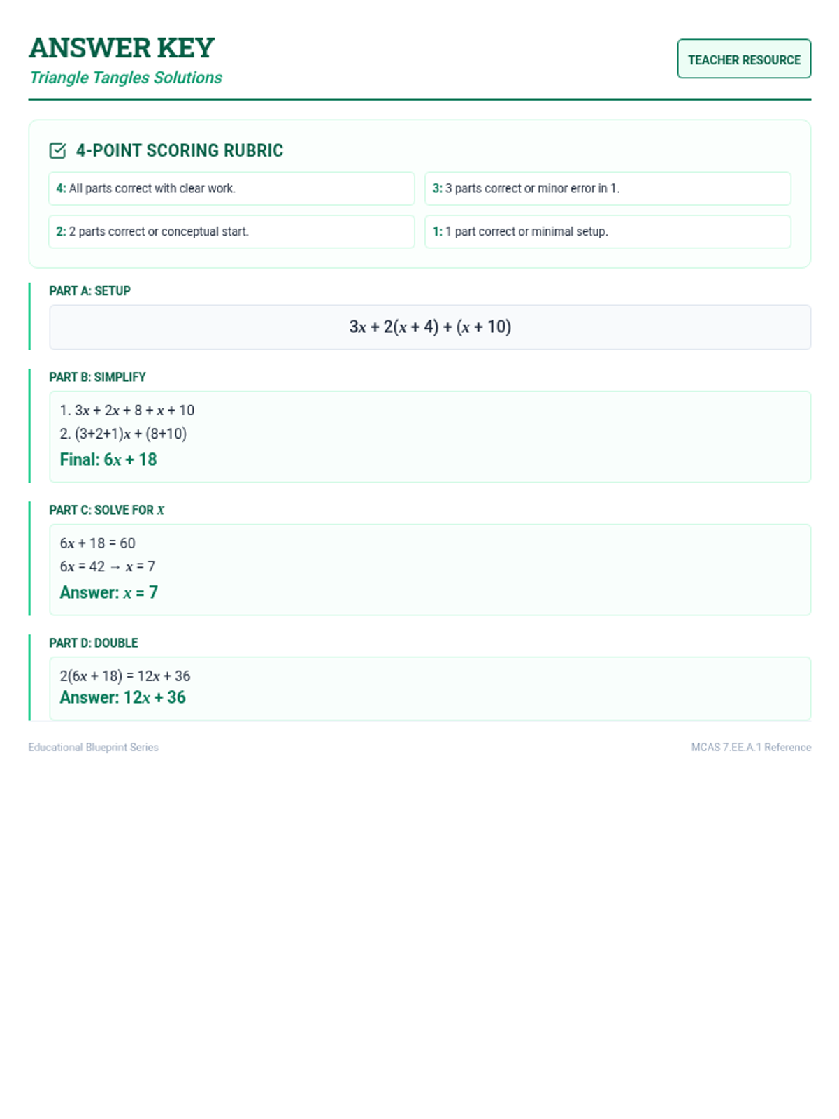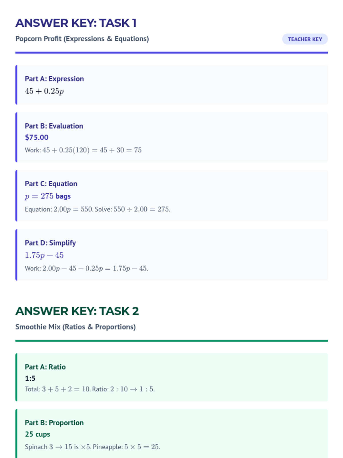 A teacher-facing answer key for all practice problems and exit tickets, including common misconception alerts and success criteria.