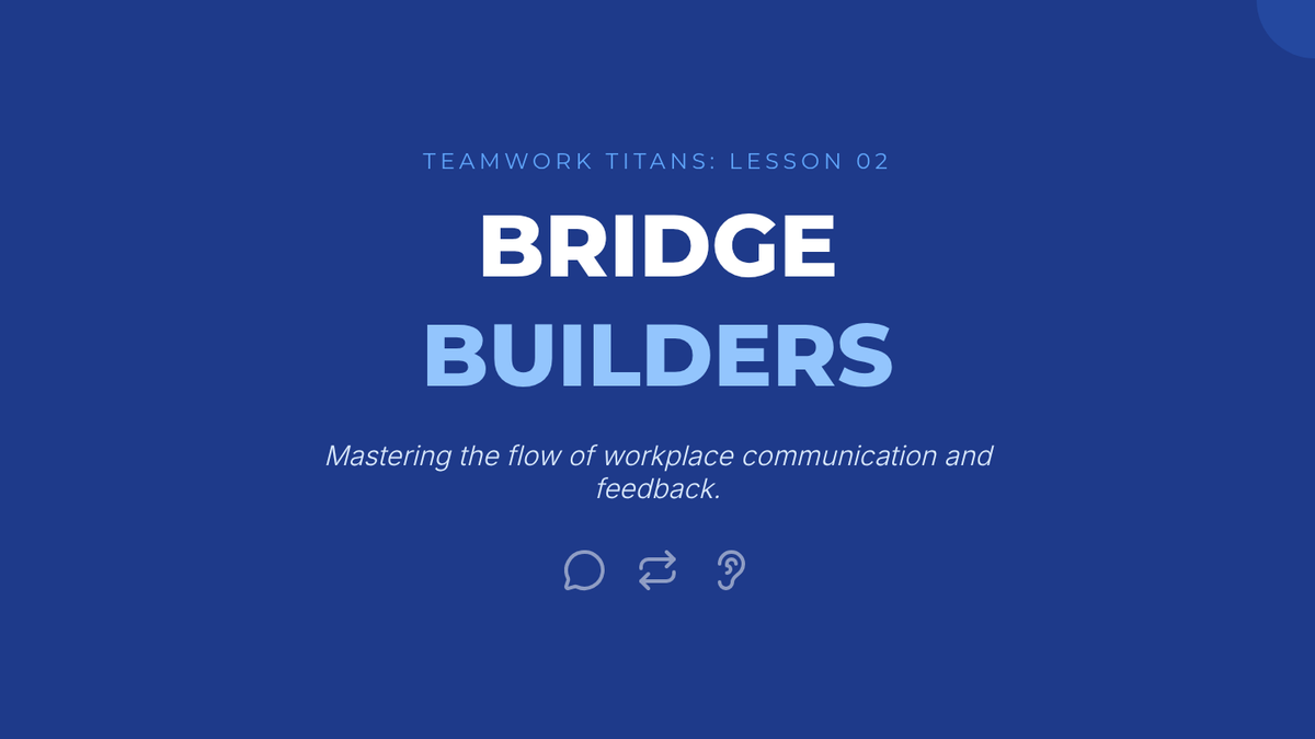 A dynamic slide deck for Lesson 2, exploring the communication spectrum, active listening, and the mindset shift required for professional feedback. Revised for improved contrast and height consistency.