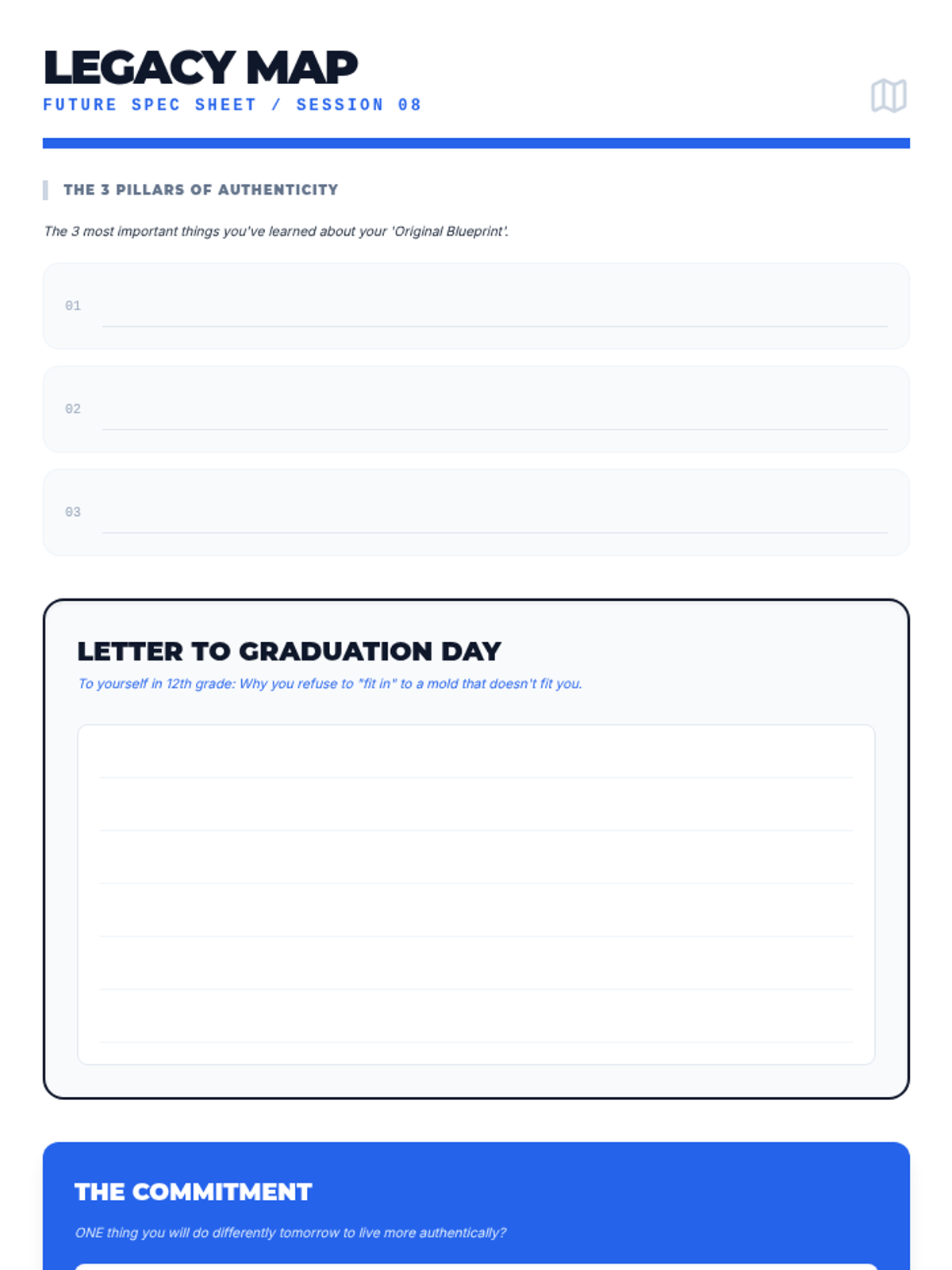 The final worksheet for Session 8. Optimized for single-page printing. Switched dark work area to light for legibility and increased pillar box heights.
