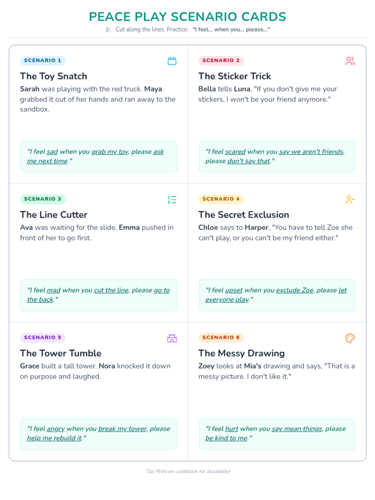 An 8-page printable journal designed for elementary students to explore and process emotions including anger, sadness, happiness, nervousness, embarrassment, silliness, tiredness, and sickness. Each page features specific prompts for identification and coping strategies with dedicated drawing and writing spaces.