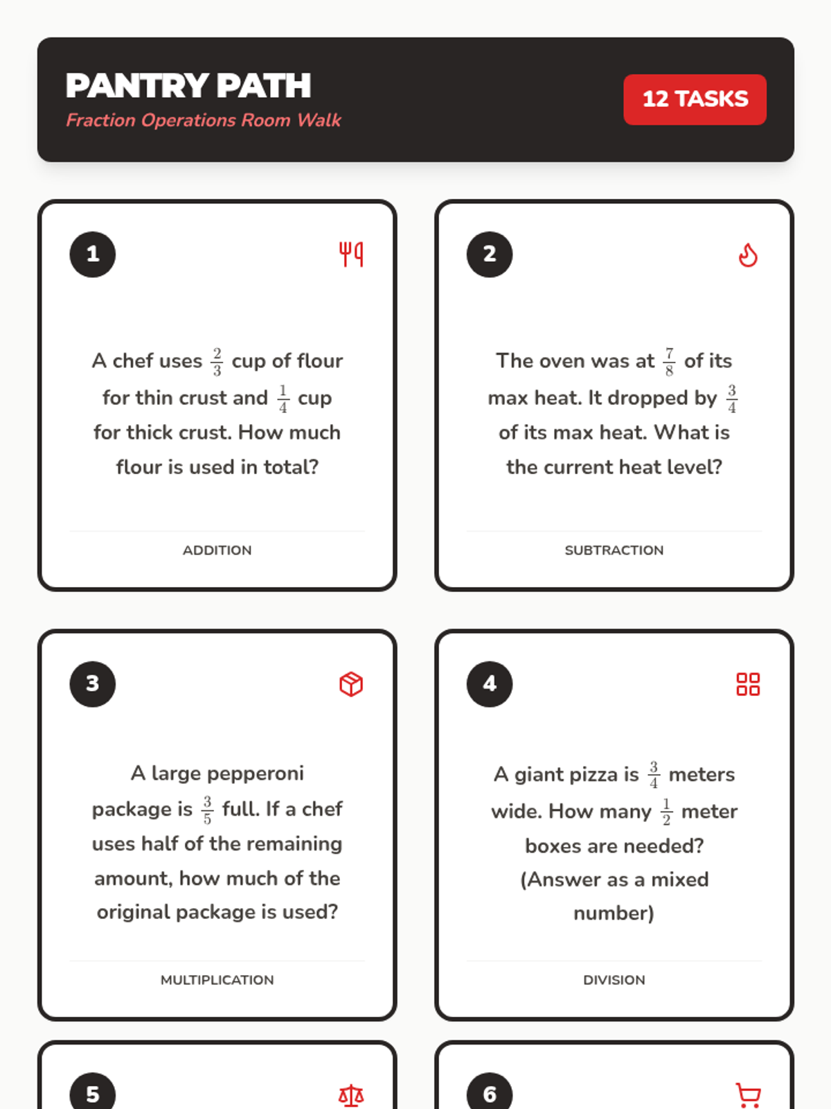A Jeopardy-style review presentation featuring 8 questions across 4 categories: Ratios & Proportional Reasoning, The Number System, Expressions & Equations, and Geometry & Statistics. Each question slide is followed by an answer slide with brief explanations.
