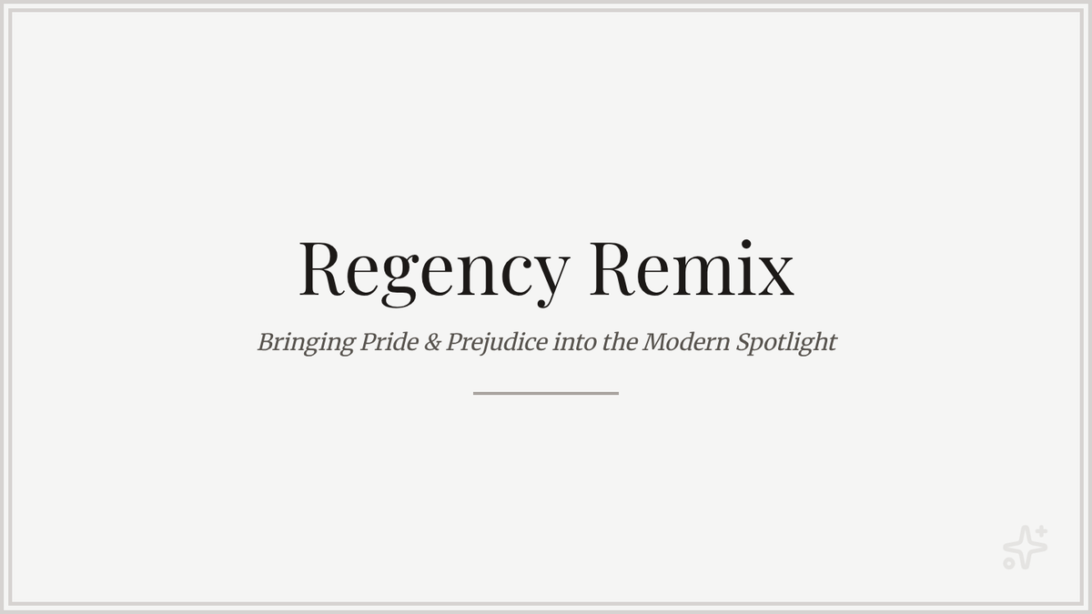 A visual presentation for the Regency Remix lesson, introducing students to the creative options of multimedia or diorama projects for teaching Pride and Prejudice themes. It includes project requirements, brainstorming steps, and gallery walk guidelines.