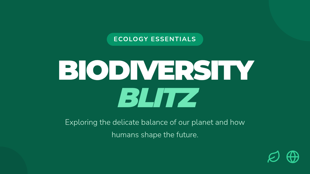 A dynamic presentation covering biodiversity, human impact, and conservation strategies. Includes a 'Chain Reaction' word association activity to reinforce key ecological terms.