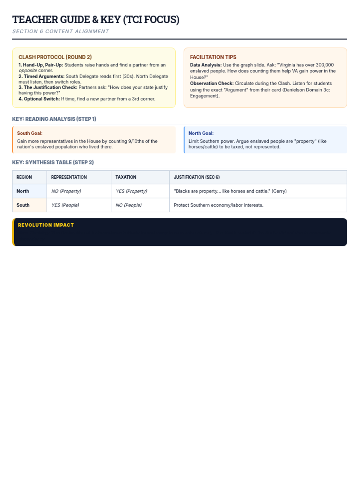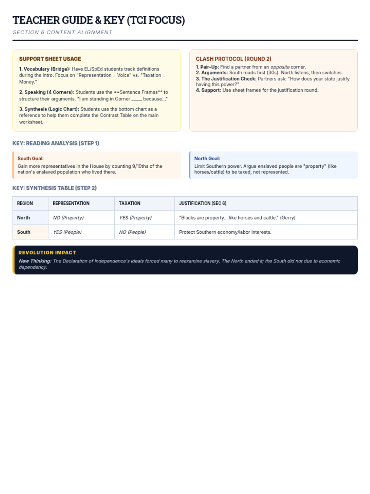 Final condensed 1-page Teacher Guide & Answer Key for the Compromise Conundrum lesson. Includes specific instructions for the Student Support Sheet and the Four Corners "Clash Protocol."