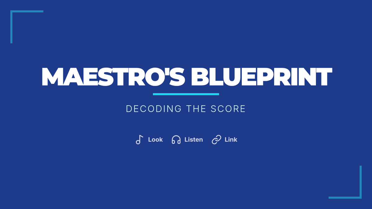 A high-impact visual presentation for middle school band and choir ensembles that introduces the 'Maestro's Blueprint' framework for score analysis, focusing on decoding technical elements and citing evidence from the score.