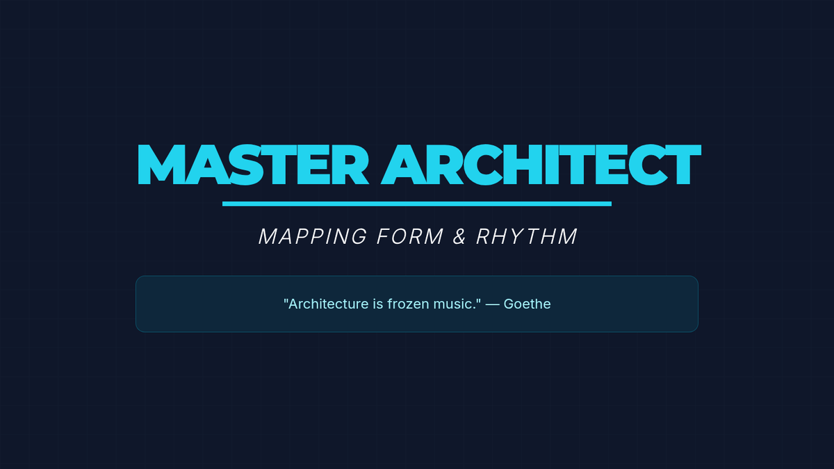 A slide deck for middle school music ensembles focusing on structural analysis, rhythmic motifs, and musical form, encouraging students to act as 'Master Architects' of their music.