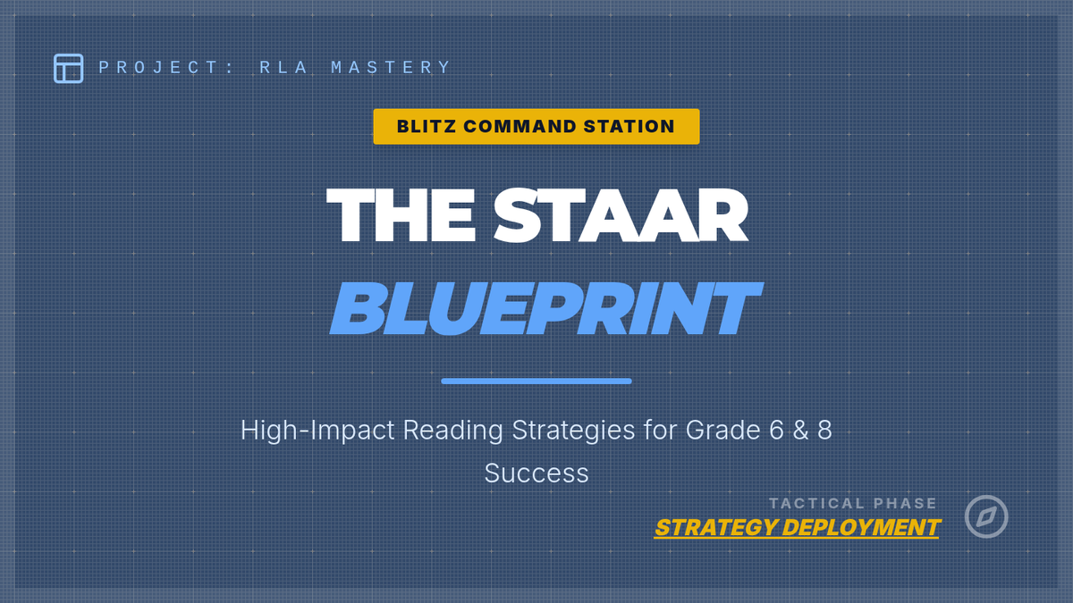 A high-rigor tactical slide deck for a middle school STAAR Blitz, featuring tiered strategies for 6th and 8th graders with higher-order thinking Check for Understanding (CFU) questions.