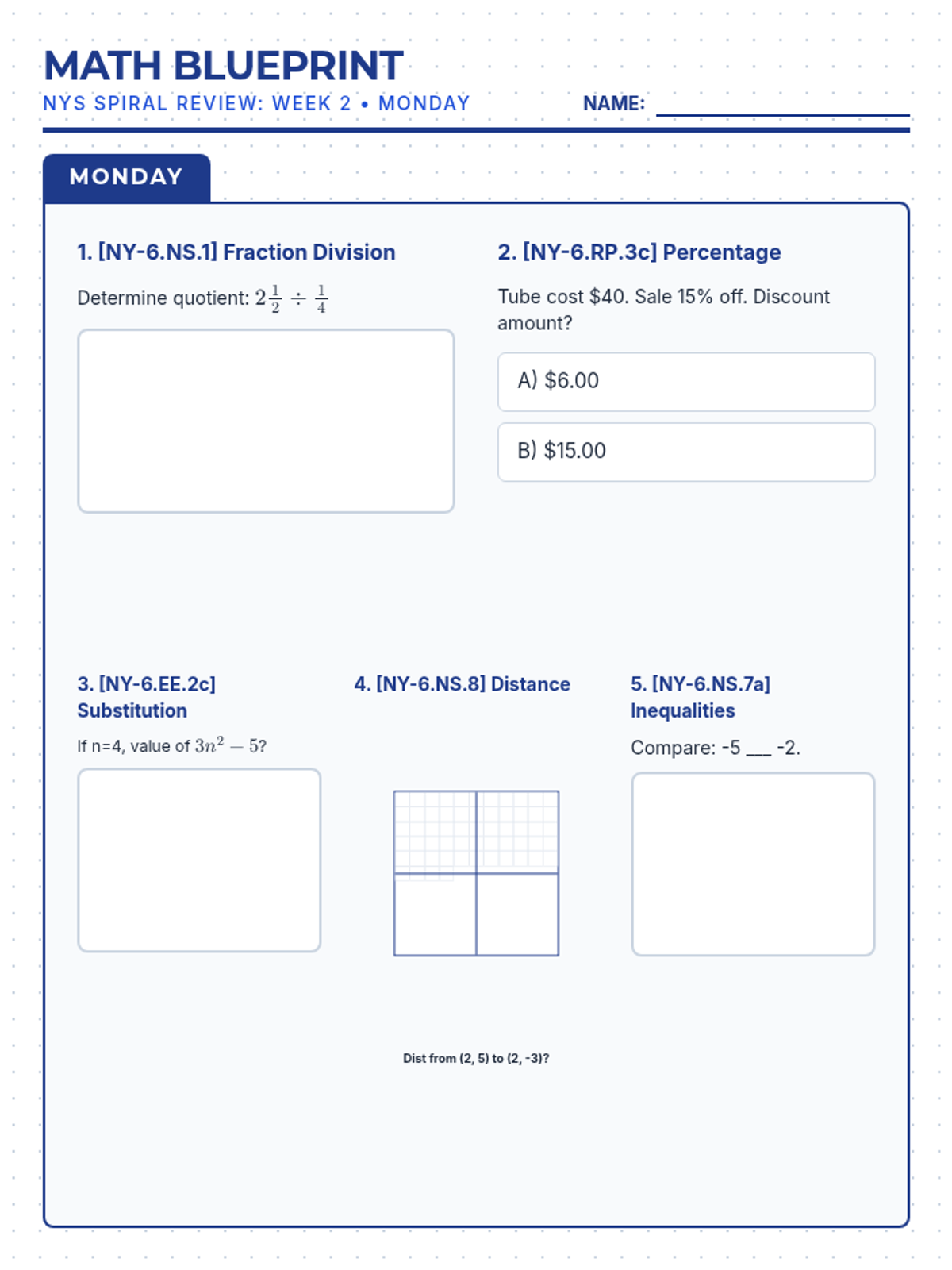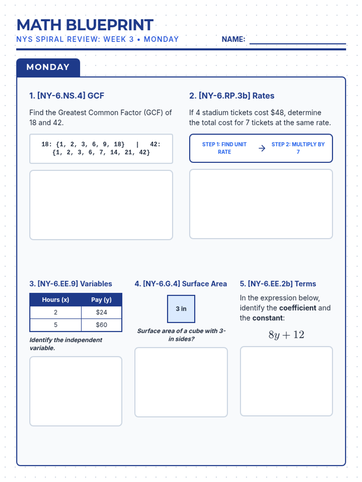 Math Blueprint Week 1 Booklet (NYS Aligned)