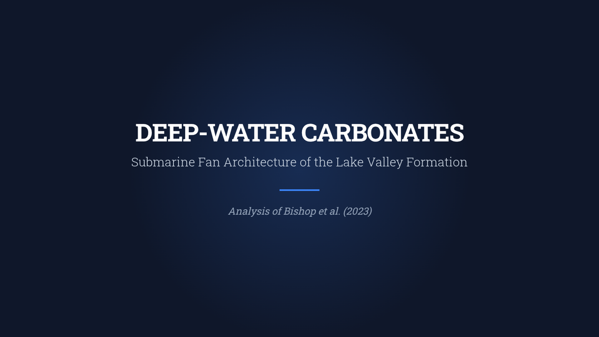 A graduate-level slide deck focusing on the carbonate submarine fan deposits of the Lake Valley Formation, featuring facies associations and depositional models.