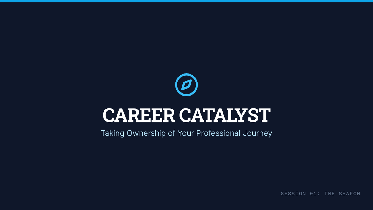 A high-impact 15-slide presentation deck (expanded for full 95-minute coverage) focused on shifting from a passive to an active job search mindset. Includes clear visual breakdowns of the 'Research Loop', detailed agency types, and fixed activity slides.