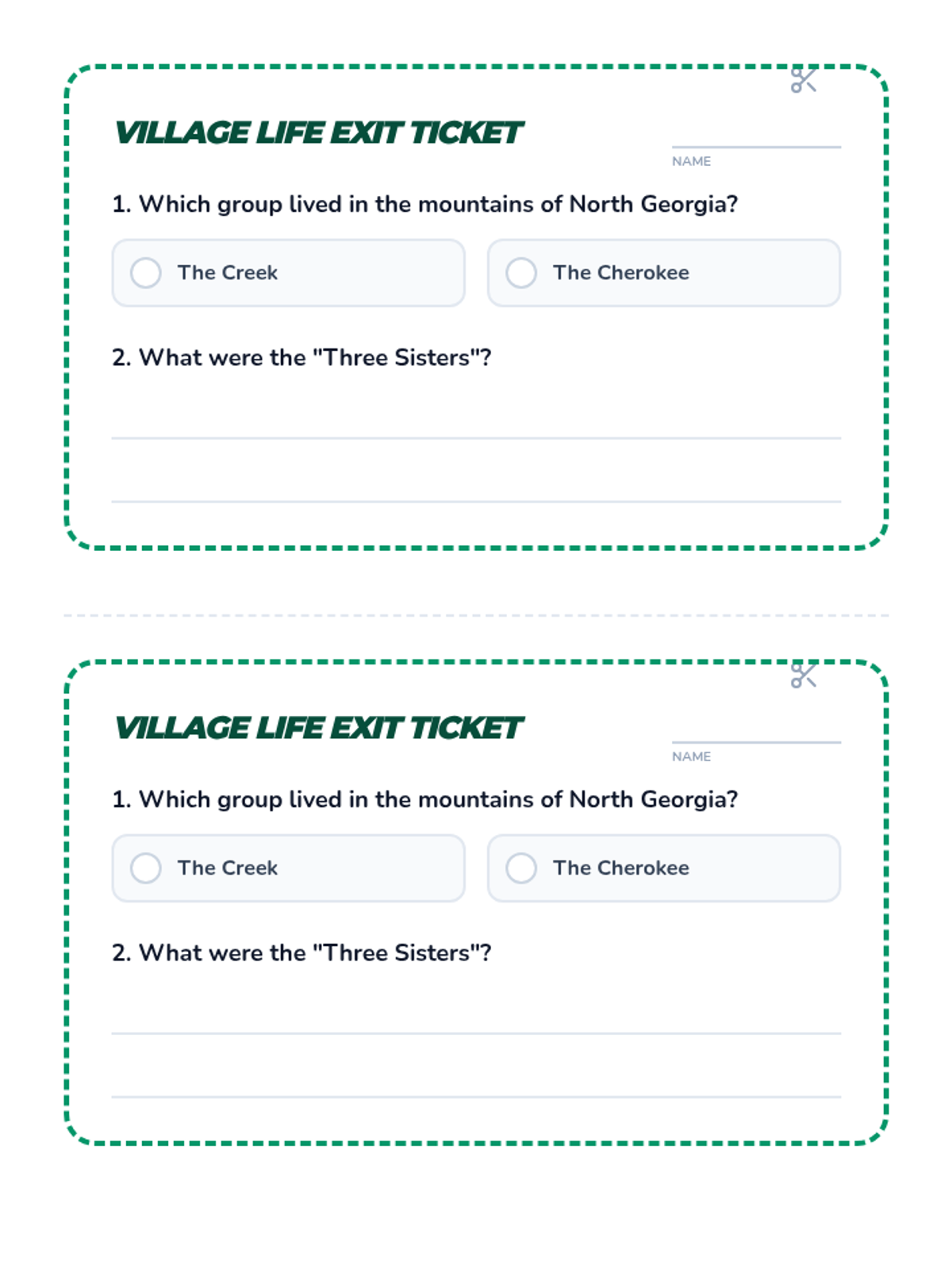 A quick assessment for 2nd-grade students to check understanding of Creek and Cherokee locations and agriculture.