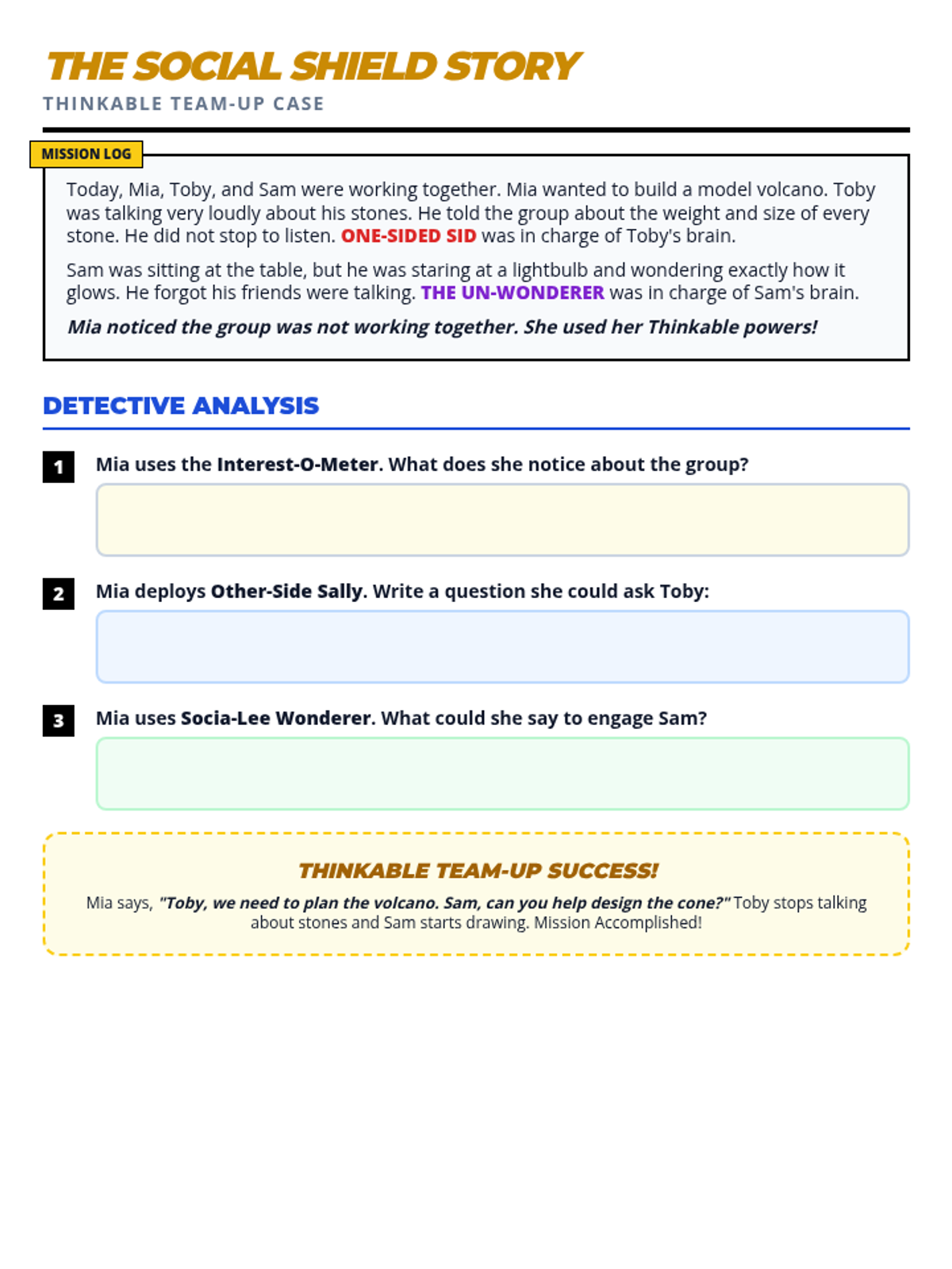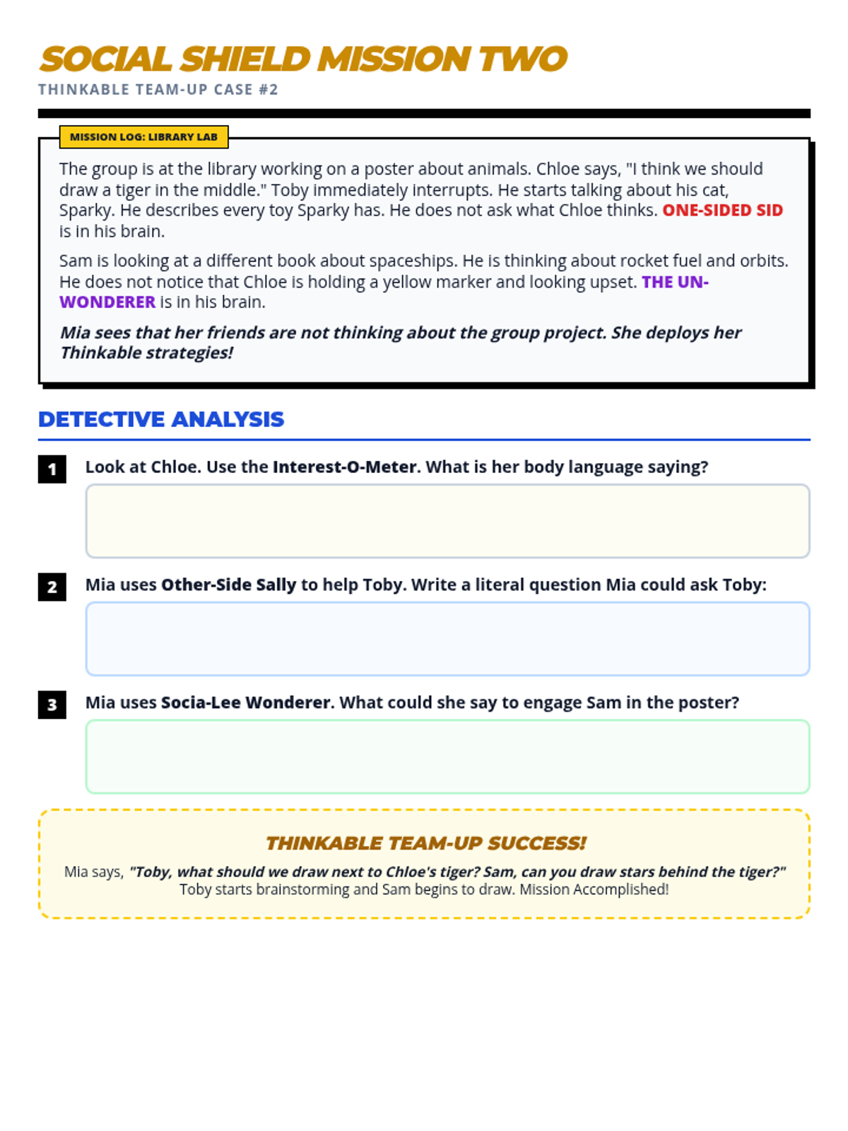 A core P4 worksheet (Junior Level) focused on vocabulary expansion. Features 5 scenarios (on multiple pages in standard print) where students must provide precise emotion upgrades and justifications, supported by a categorized word bank. Improved contrast and visual consistency across pages. Standardized labels and improved work areas. Includes a blank 5-step ladder for custom exploration.