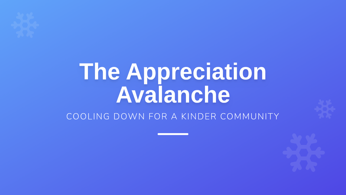 Visual slide deck for the Appreciation Avalanche lesson, explaining the concept of 'Crystal Clear' kindness and providing step-by-step instructions for the community-building activity.