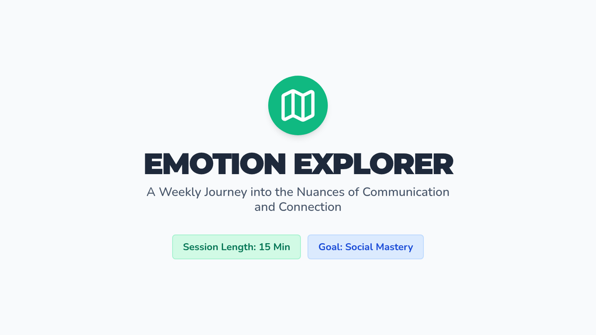 A dynamic visual presentation template for the 15-minute weekly emotion lessons, featuring structured sections for physical sign detection, situational triggers, and social response scripts.