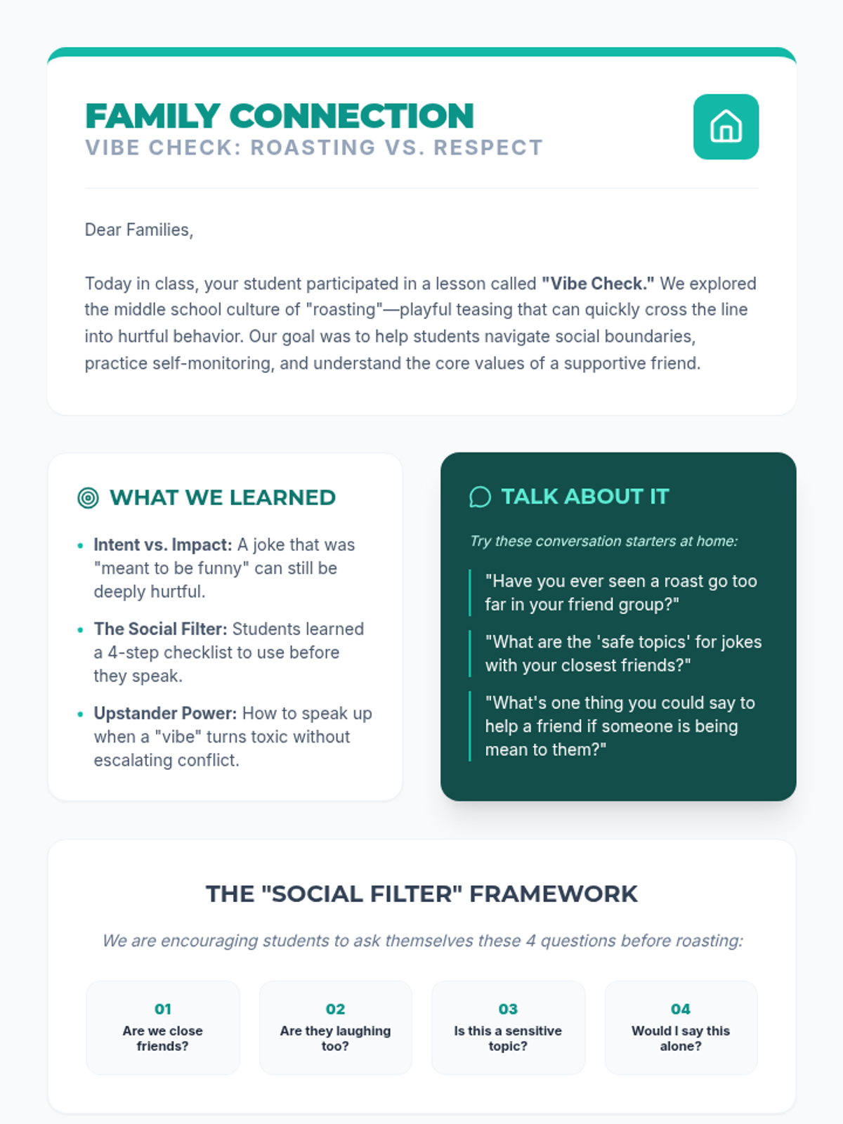 A high-visual anchor chart and quick-reference blueprint for students to visually understand the flow of thoughts through the social filter.
