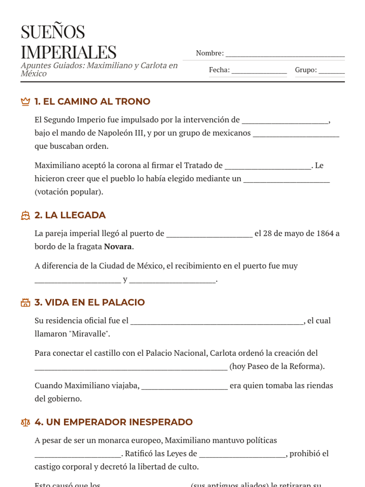 A visual presentation for students detailing the Second Mexican Empire, specifically the lives and reign of Maximilian and Carlota. It covers their arrival, life in Chapultepec, their liberal policies, and their eventual downfall.
