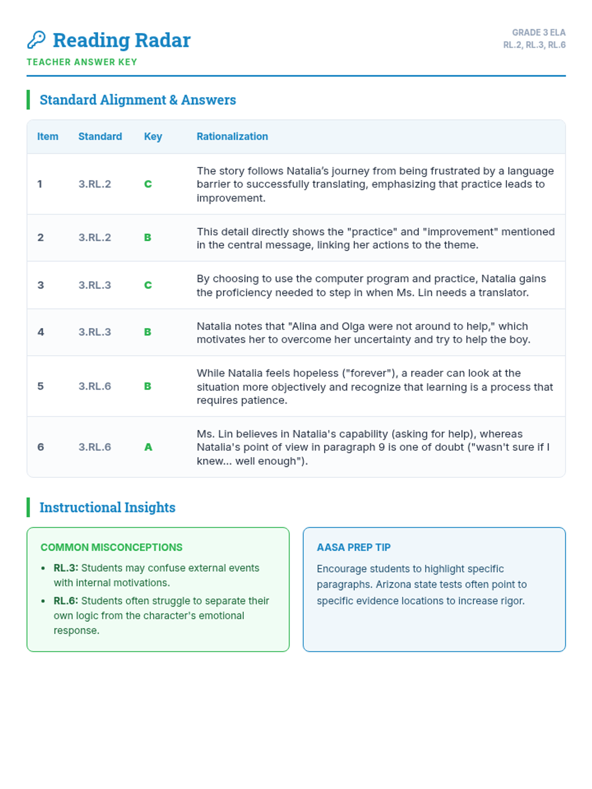 An updated teacher guide with improved text contrast for rationales and a better layout that avoids splitting the answer key.