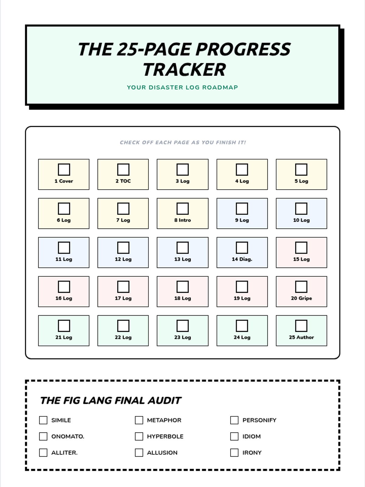 A final project checklist for Week 4, helping students ensure they have met all writing and figurative language requirements for their diary.