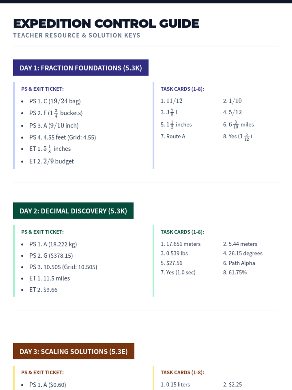 Comprehensive teacher guide and solution key for the 4-day STEM Lab Expedition reteach sequence. Includes updated keys for all word problems and task cards.