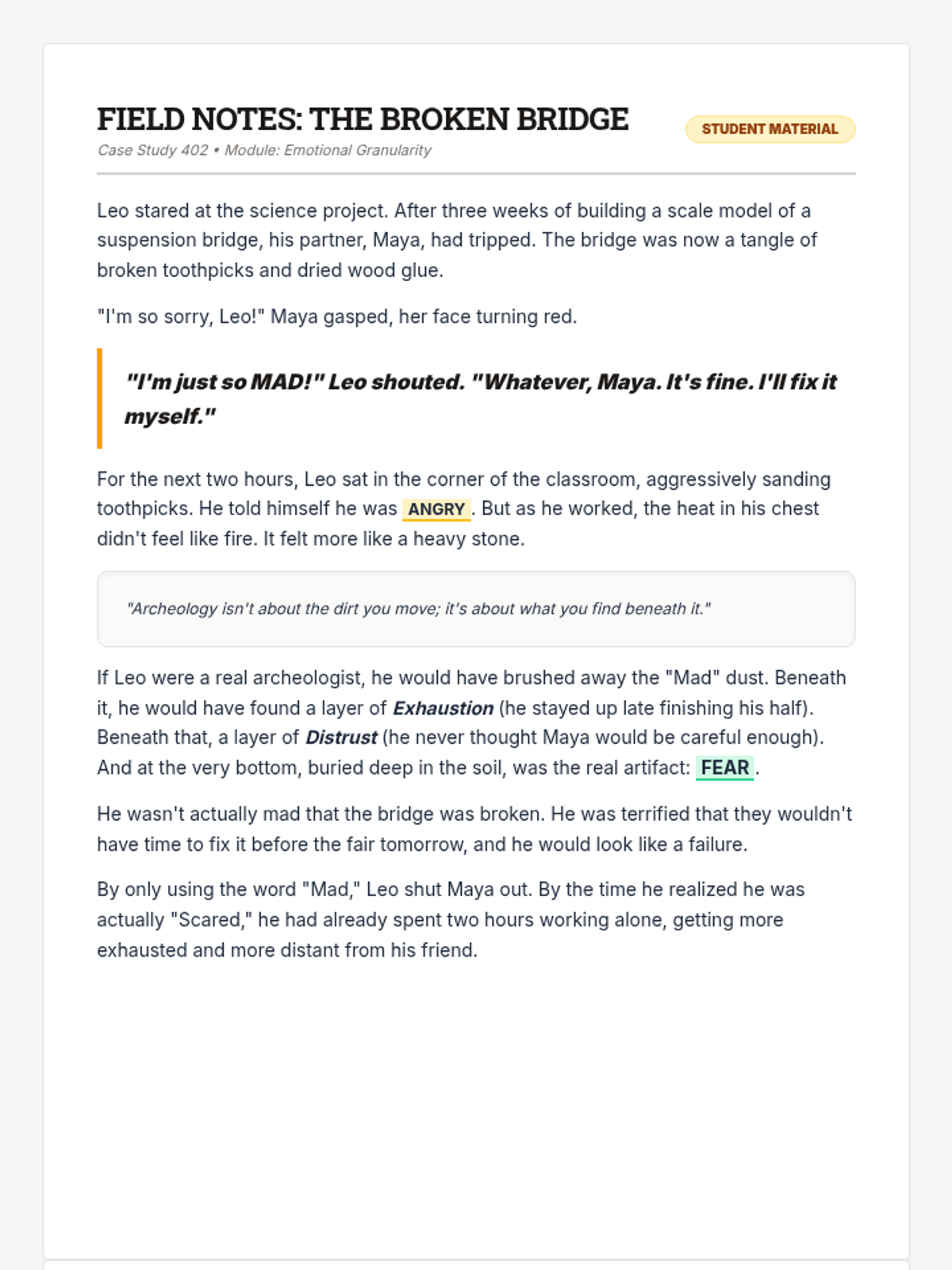 A student-facing reading passage and analysis worksheet. Updated with fixed page breaks (consolidated to 2 pages), added spaces in dialogue, and generous writing lines for students. Revised title to match content.