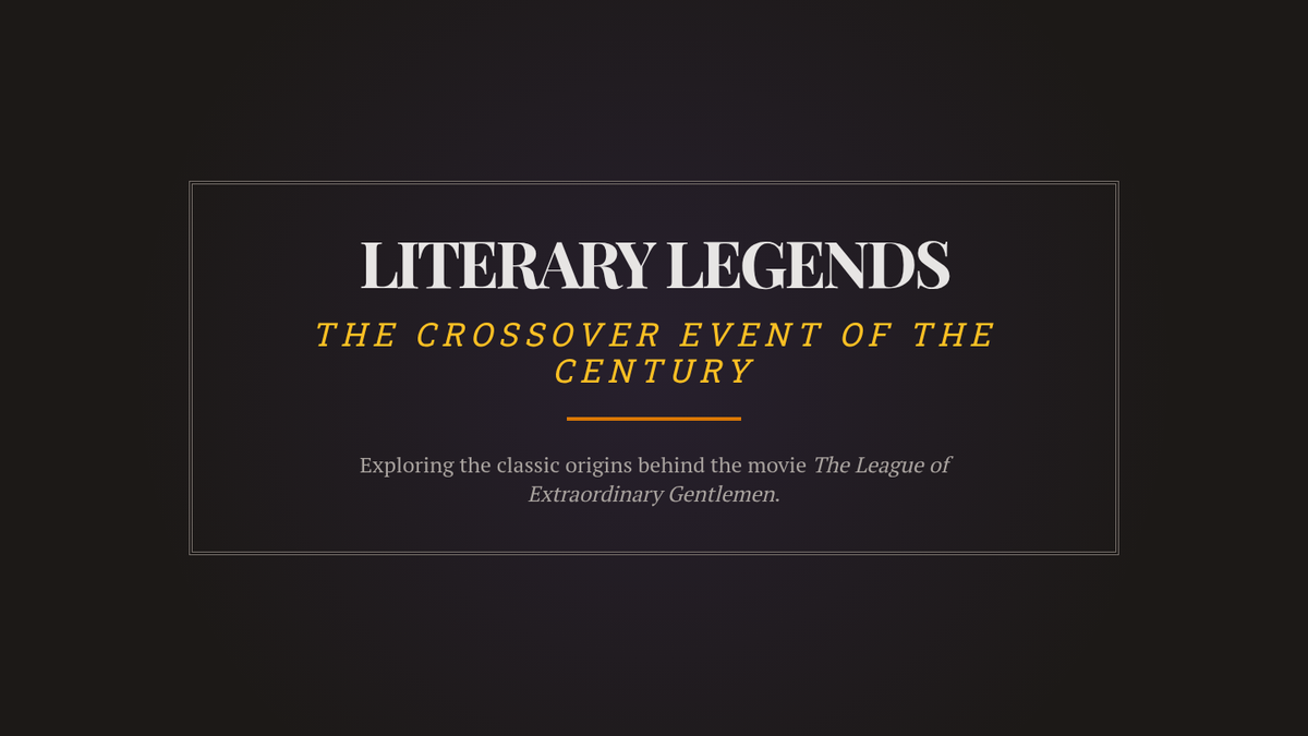 Introductory slides for the 'Literary Legends' project, explaining the concept of the cinematic crossover and the students' research mission.