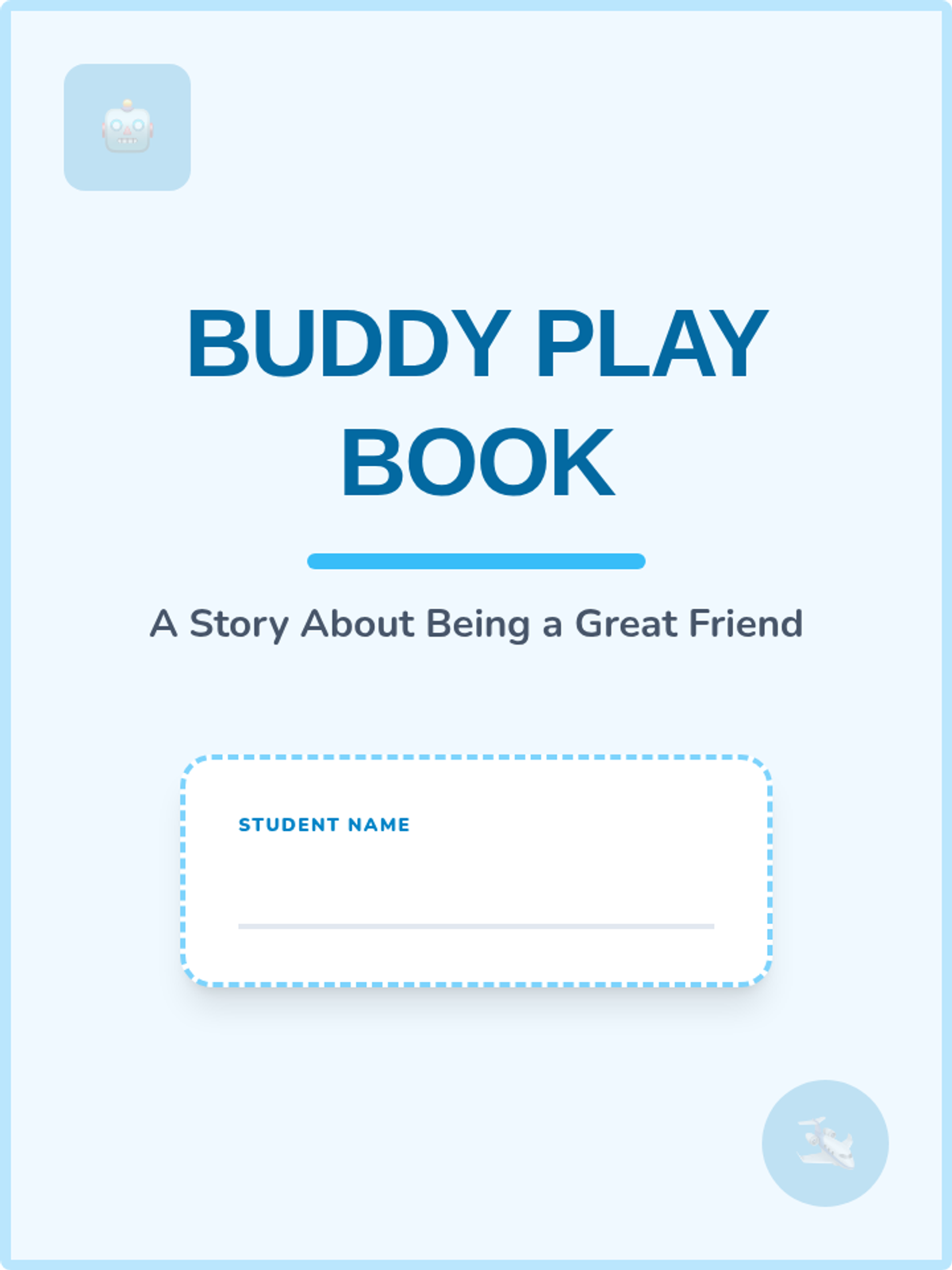 A multi-page social story book designed for students to learn about friendship, sharing, and emotional regulation. Features expressive faces for feelings and engaging play themes like robots and dinosaurs.
