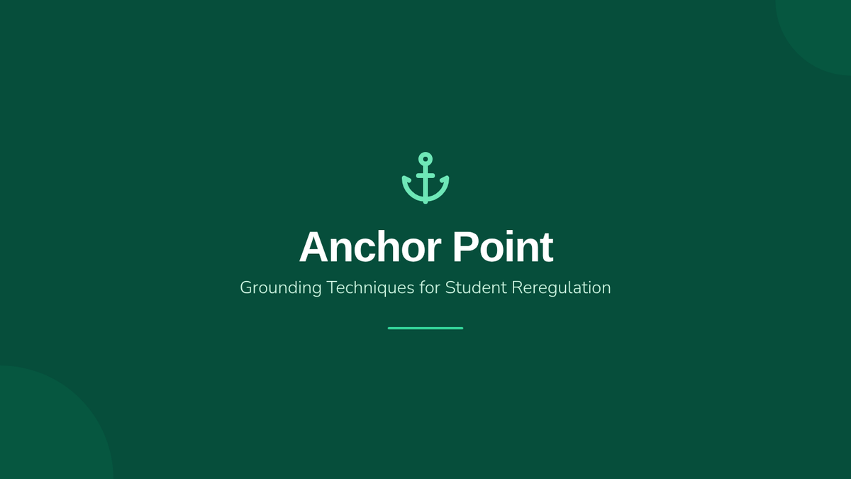 A visually calming and professional slide deck for clinical staff training, featuring the Window of Tolerance model, sensory 5-4-3-2-1 steps, and cognitive grounding exercises.