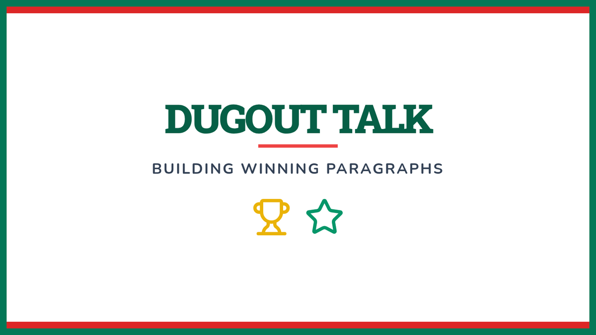 A visual slide deck introducing the parts of a paragraph using a baseball diamond metaphor. Designed with high contrast and simple vocabulary for a 4th grader with attention challenges.
