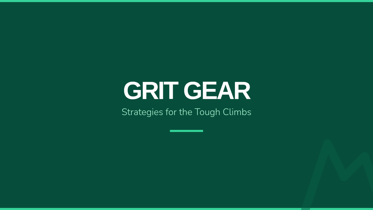 A visual presentation introducing 'Grit Gear' strategies—self-talk, chunking, and power breaks—to help students overcome difficult or boring tasks.