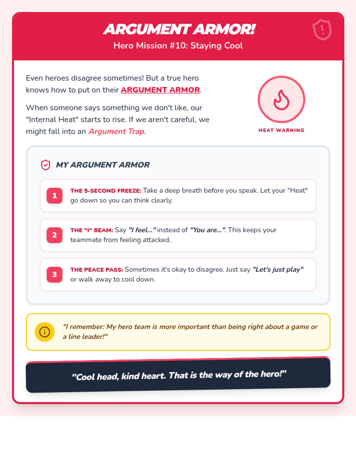 A social story and visual guide about de-escalation and avoiding arguments. It introduces 'Argument Armor' as a set of tools for staying calm when disagreements happen.
