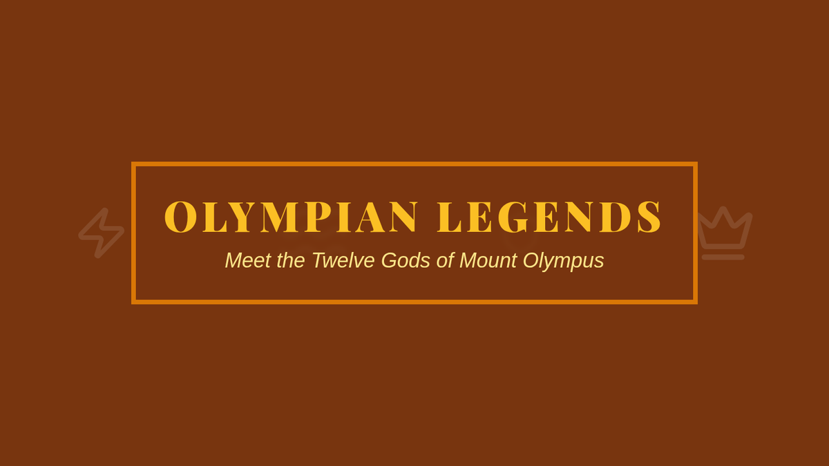 A visual presentation to introduce the 12 major Olympians, their home on Mount Olympus, and the concept of divine symbols.
